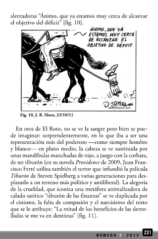 tas para generar angustias. En una viñeta de Mora, un per- de la crueldad, que iconiza una metáfora animalizadora de