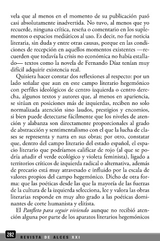 que, dentro del campo literario del estado español, el espa- las injusticias del sistema. Fernando Díaz escribe supuesta pro-