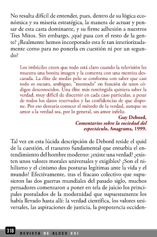 Los imbéciles creen que todo está claro cuando la televisión les cho a través del espectáculo y del nuevo pensamiento único