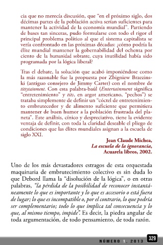 Como bien se encarga de dejar patente el propio Michea en trataba simplemente de definir un “cóctel de entretenimien-