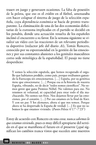 do la Eurocopa sin emocionarnos. […] España, por su genética nacionalistas muy arraigados, que hoy vemos resonar en la