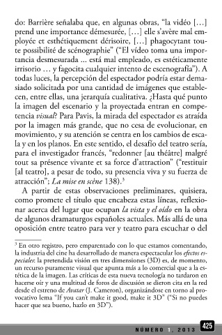 queja de la mala gestión de la maquinaria escénica en Espa- tencia visual? Para Pavis, la mirada del espectador es atraída