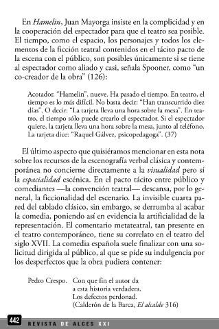 la escena con el público, son posibles únicamente si se tiene (Calderón de la Barca, El mágico 171-172)