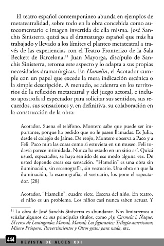 11 La obra de José Sanchis Sinisterra es abundante. Nos limitaremos a adulto —que no intenta hacer de niño— evita por un lado la identifica-