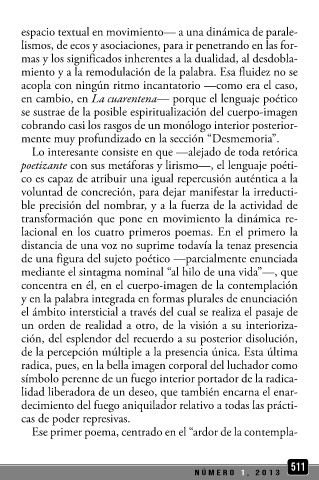 rentar, desde la mayor densidad de su belleza, la posterior e miento y a la remodulación de la palabra. Esa fluidez no se