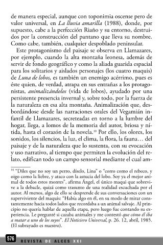 10 “Diles que no soy un perro, díselo, Lina” o “corro como el rebeco, y serva la inmersión del autor en el paisaje plural de un es-