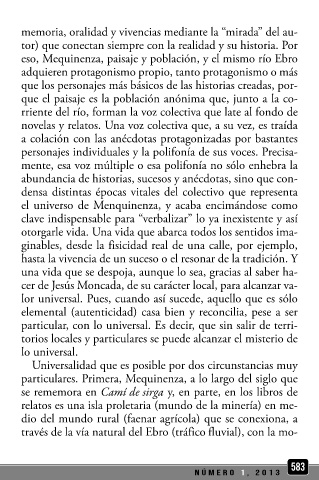 lla natal del autor y en el paisaje evocado y recobrado (por través de la vía natural del Ebro (tráfico fluvial), con la mo-