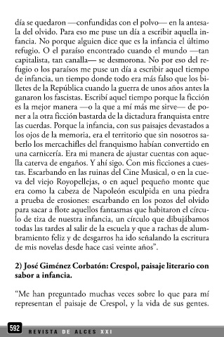 para sacar a flote aquellos fantasmas que habitaron el círcu- mi infancia y de mi adolescencia en Crespol. Pero dudo que