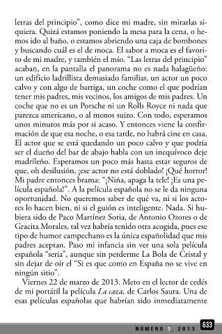 del macho, a quien no doblega ningún sol. Termina la pelí- letras del principio”, como dice mi madre, sin mirarlas si-