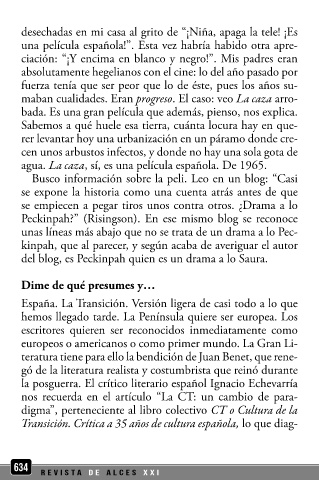 Transición. Crítica a 35 años de cultura española, lo que diag- complementarias en muchos escritores españoles: renegar