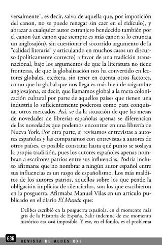 versalmente”, es decir, salvo de aquella que, por imposición de la literatura española que se da a conocer en la década de los