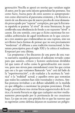 ra española se pusiera “al nivel” de otras literaturas, lo que plo: esto ya se hizo en los 70, o cuando fuera), funcionaran