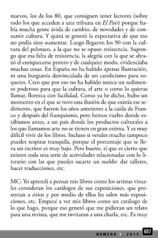 que los libros sean considerados como objetos de consu- MC: Yo aprendí a pensar mis libros como los artistas visua-