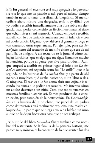 ese mundo interior de la adolescencia. JB: El título del libro La ciudad feliz y también como nom-