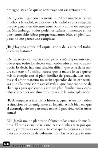 JB: ¿Hay una crítica del capitalismo y de la ética del traba- lia sin nombrar a nadie. El libro arranca con una escena en