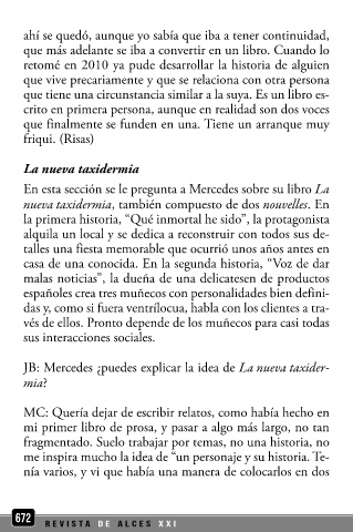 nueva taxidermia, también compuesto de dos nouvelles. En muy bien”. Y me pregunto, “¿Por qué? ¿Porque tienes una