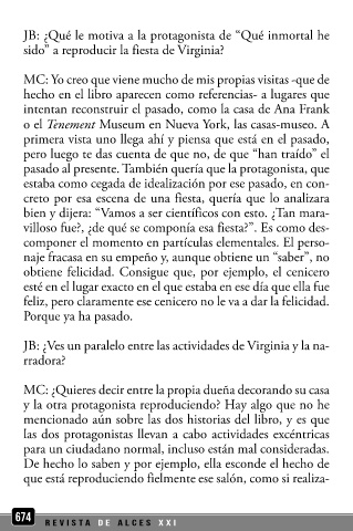 JB: ¿Ves un paralelo entre las actividades de Virginia y la na- una misión que cumplir. Sin embargo la protagonista real