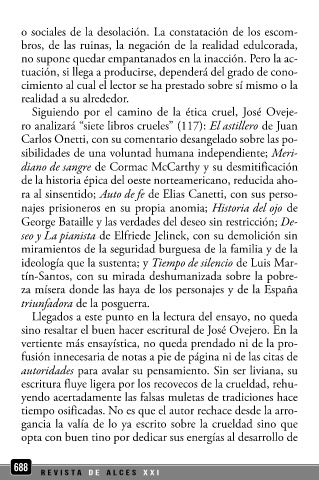 Siguiendo por el camino de la ética cruel, José Oveje- análisis de la crueldad ética en lo literario de José Ovejero