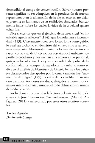 evitable agredir al lector” (194), que lo molestará e incomo-