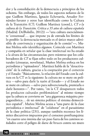 cultura de la Transición. Crítica a 35 años de cultura española rriendo, por ejemplo, Muñoz Molina es el primero en ad-
