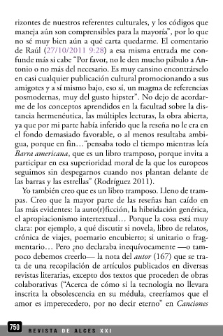 Barra americana, que es un libro tramposo, porque invita a no sé si es un ensayo, un libro de viajes... no lo sé.” (Gutié-