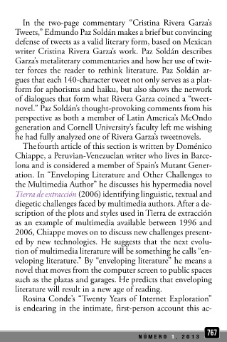 fers a helpful summary of the motivation behind his novels Tweets,” Edmundo Paz Soldán makes a brief but convincing
