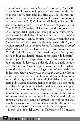 Iberoamericana, “Tecnoescritura: literatura y tecnología en ras Hispanas, y la Revista de ALCESXXI— pero ninguna de