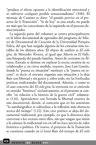 mensaje de Camino es claro: “el pasado pervive en el pre- El análisis de El cielo gira sirve de preámbulo al comen-