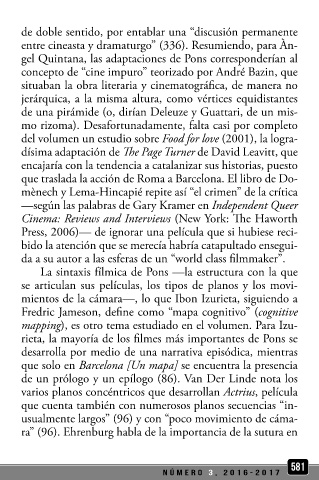 Todos estos estudios concurren además en que Pons esta- que cuenta también con numerosos planos secuencias “in-