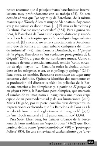 la filmografía de Pons, y en particular en Ocaña (159), film neasta reconoce que el paisaje urbano barcelonés se interre-