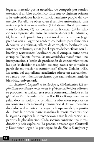 globalización. Brendan Cantwell e Ilkka Kauppinen reco- del capitalismo académico ofrece un acercamiento interdis-