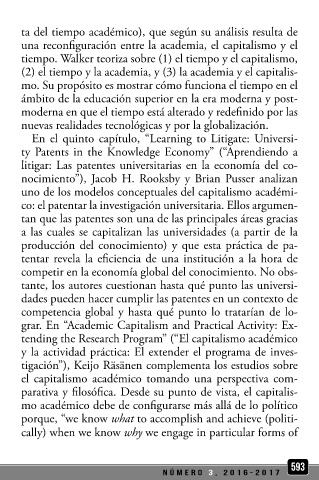 Walker aplica la teoría del capitalismo académico al régi- parativa y filosófica. Desde su punto de vista, el capitalis-